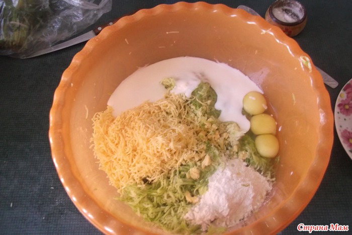 кабачки трем и добавляем все наши ингредиенты,